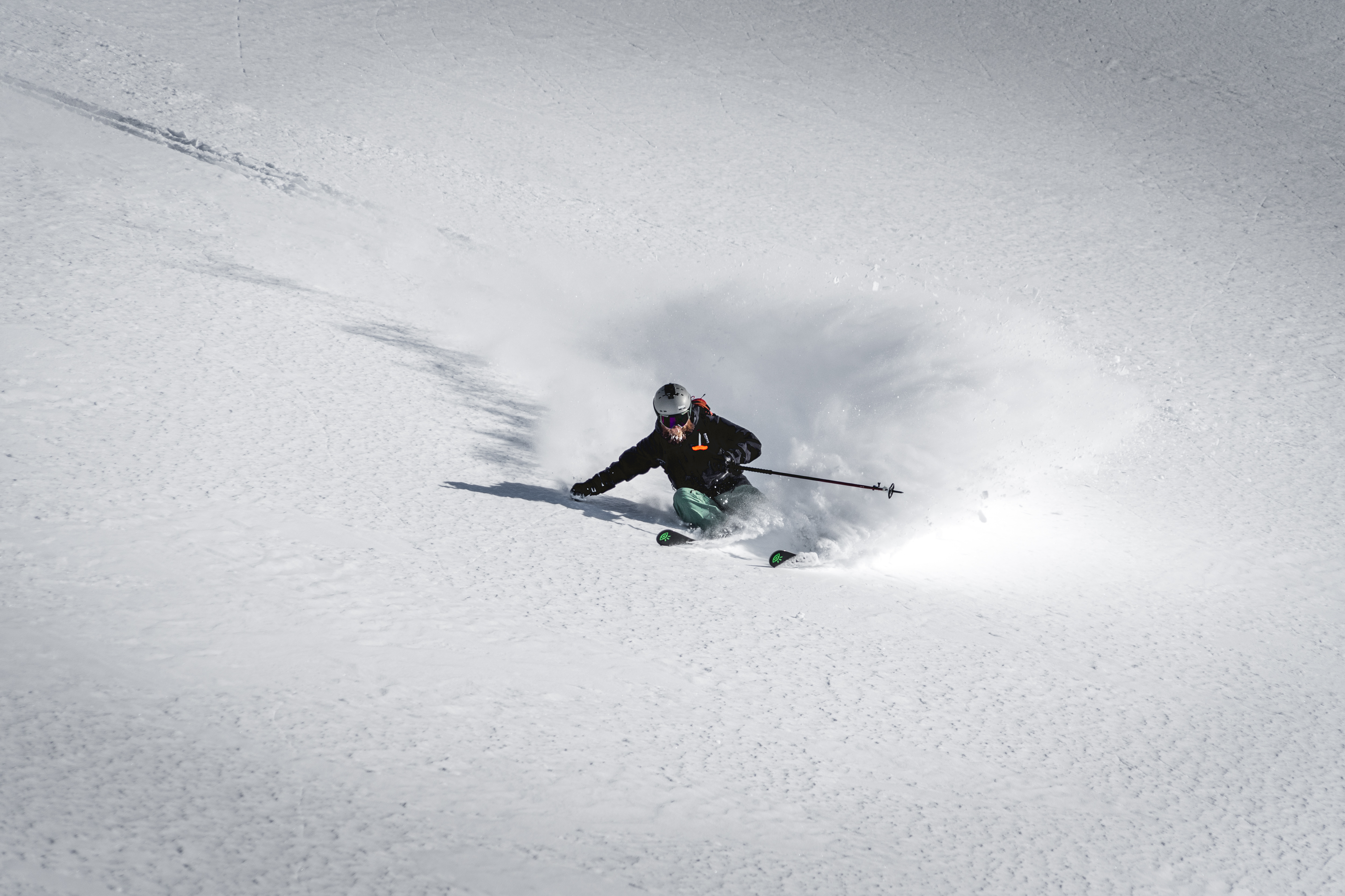 Der Big ist mit 112 mm Mittelbreite die Waffe für Powdertage. Ich bin ihn vor allem im Skigebiet oder auf kurzen Touren abseits der Lifte mit dem CAST Freetouring System gefahren und er glänzte hier mit seiner Stabilität und Verspieltheit im Neuschnee. Für längere Touren in den Ostalpen ist er aufgrund seiner Breite im Aufstieg jedoch weniger geeignet. In schneereicheren Regionen kann er mit Pinbindung aber definitiv als vollwertiger Tourenski genutzt werden.