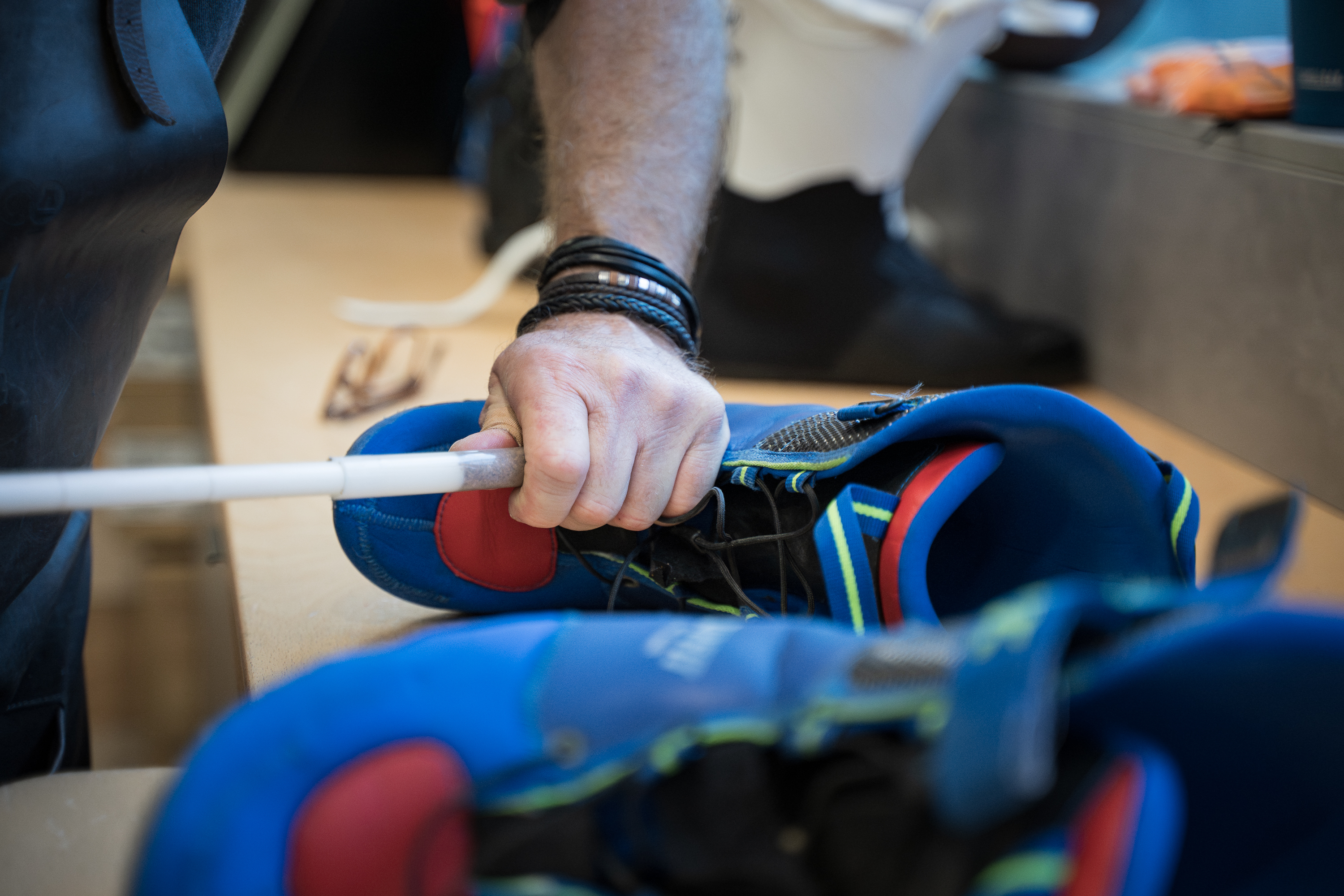 Im Gegensatz zu geschäumten Linern, die meist nur einmal angepasst werden können und dann aushärten, bleibt der OMFit-Kork immer flexibel und anpassbar. Dadurch passt sich der Innenschuh perfekt an die individuelle Anatomie an, was maximalen Komfort und gleichzeitig kompromisslose Kraftübertragung garantiert. Dieser Fokus auf die perfekte Verbindung zwischen Fuß und Schale ist der Schlüssel. Der große Pluspunkt: Der Liner ist langlebig (hält oft bis zu 1000 Skitage) und kann bei Bedarf einfach in eine neue Skischuhschale umziehen. Ein weiterer großer Vorteil ist die Langlebigkeit durch einfache Wartung: Beim Fachmann – wie etwa Jack vom Das Bootfitzimmer in Hallein – kann der Kork jederzeit nachgefüllt werden, wodurch sich der Liner wieder wie neu anfühlt.
